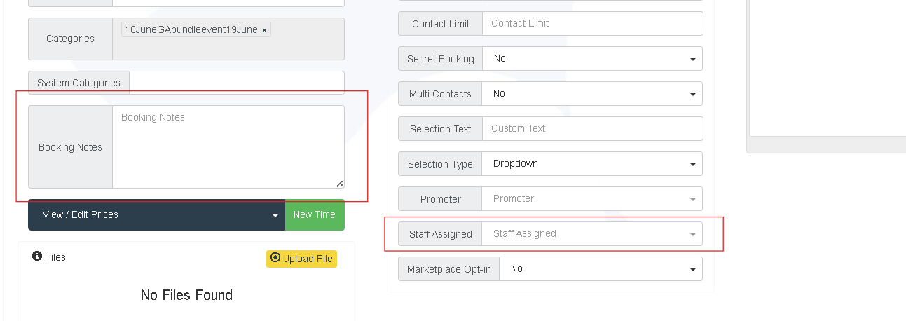 Booking Notes and Staff Assigned
